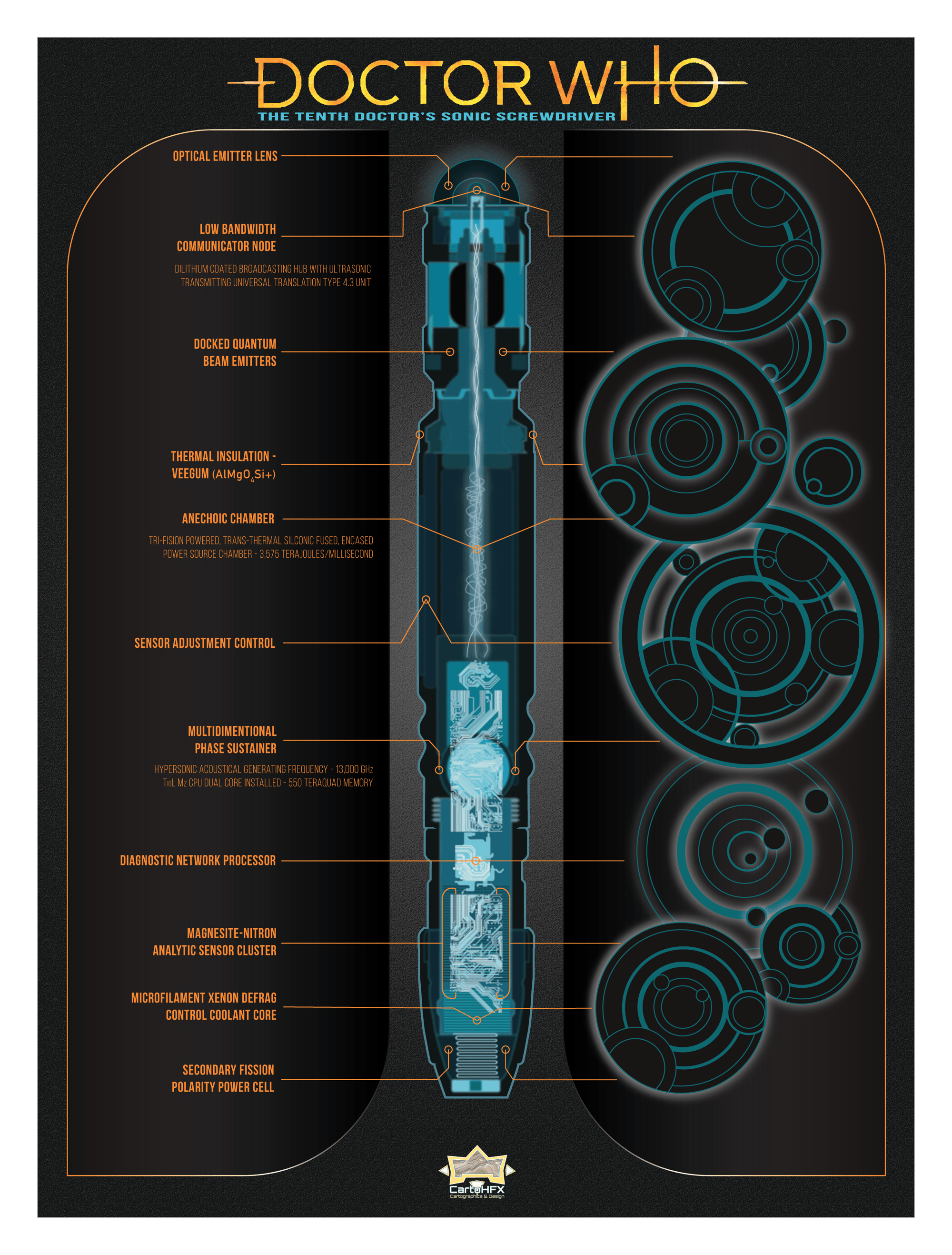 Tenth Doctor's Sonic Screwdriver Infographic - Doctor Who